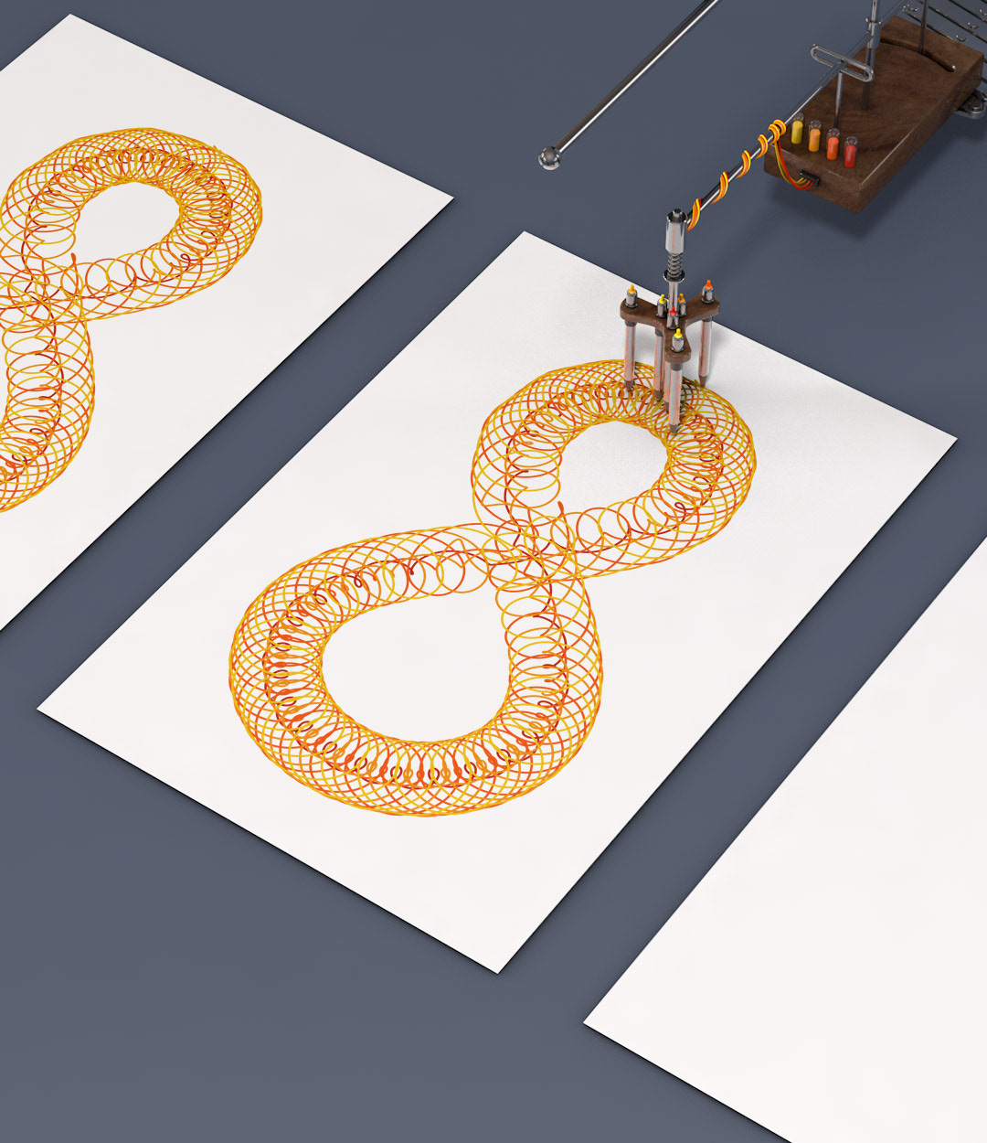 I was initially inspired to try and create a Spirograph like animation. Animated loops can be seen on our Instagram page via the link in the upper right of the page.